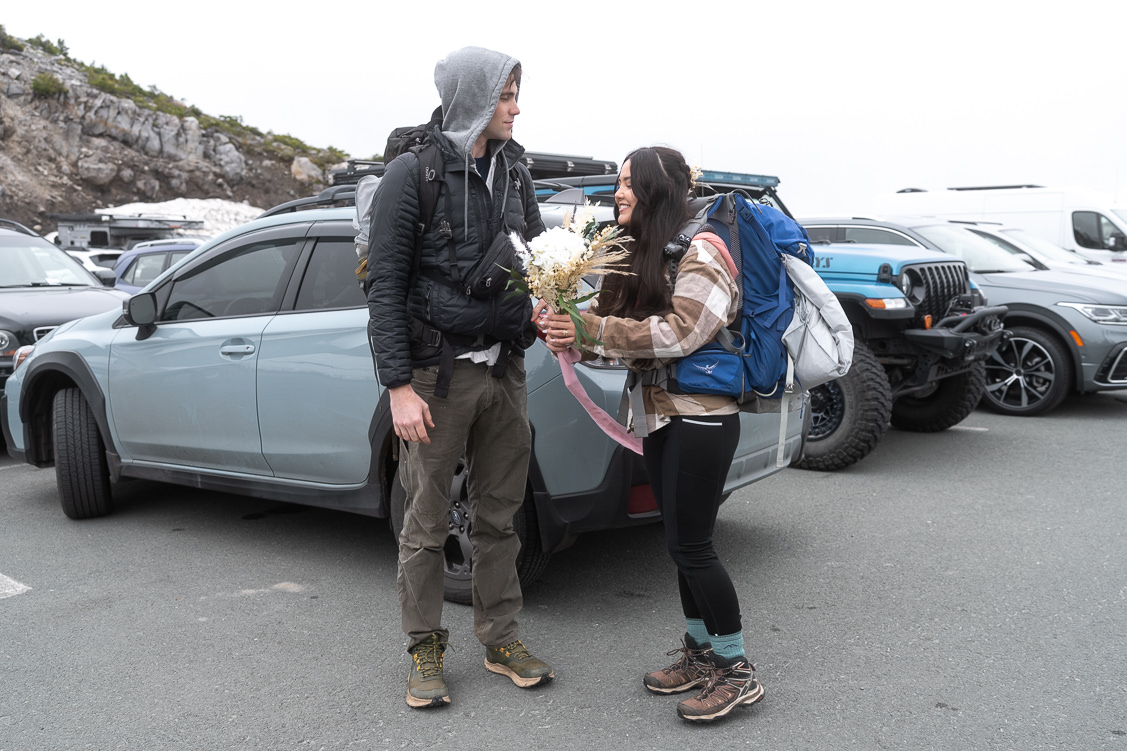 Fiona and Tyler were super stoked and were ready to go the second we met up at the parking lot. They started the day off with a fun morning hike. Took some epic photos. They decided to wear comfortable hike clothes instead of wedding attire this time because they totally can. Feeling comfortable and doing whatever you want on your elopement day is what it’s all about!
